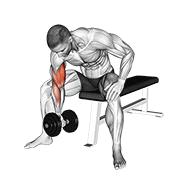 - Saisissez une haltère au poids de votre série et démarrez mouvement en bas avec le bras légèrement fléchi pour éviter de sur étirer le tendon.
